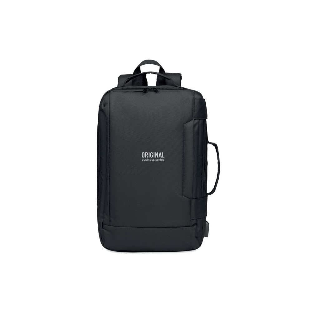 Artikel-Nr: OCBMO6329-0313' Laptop Rucksack aus 300D RPET Polyester. Innenfach mit Platz für einen 16' Laptop. Inkl. USB-Ladekabel. Gepolsterte Schultergurte.