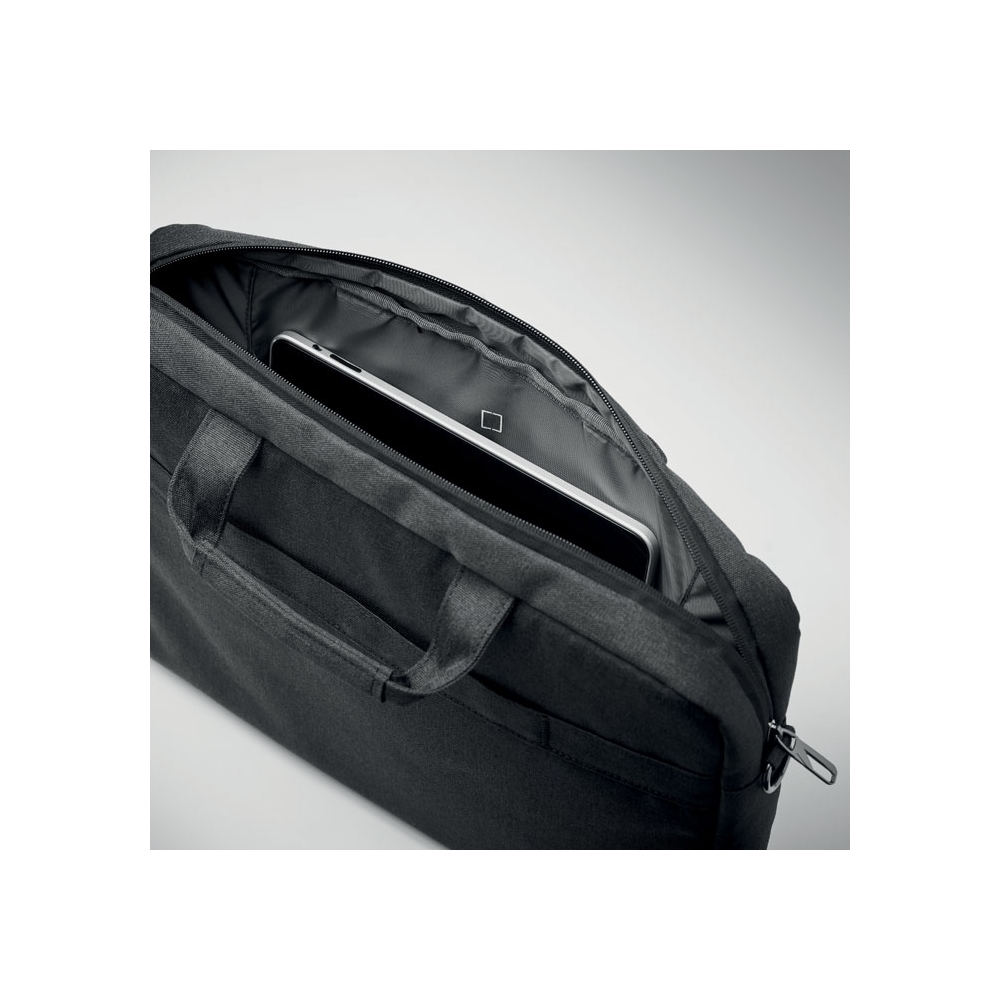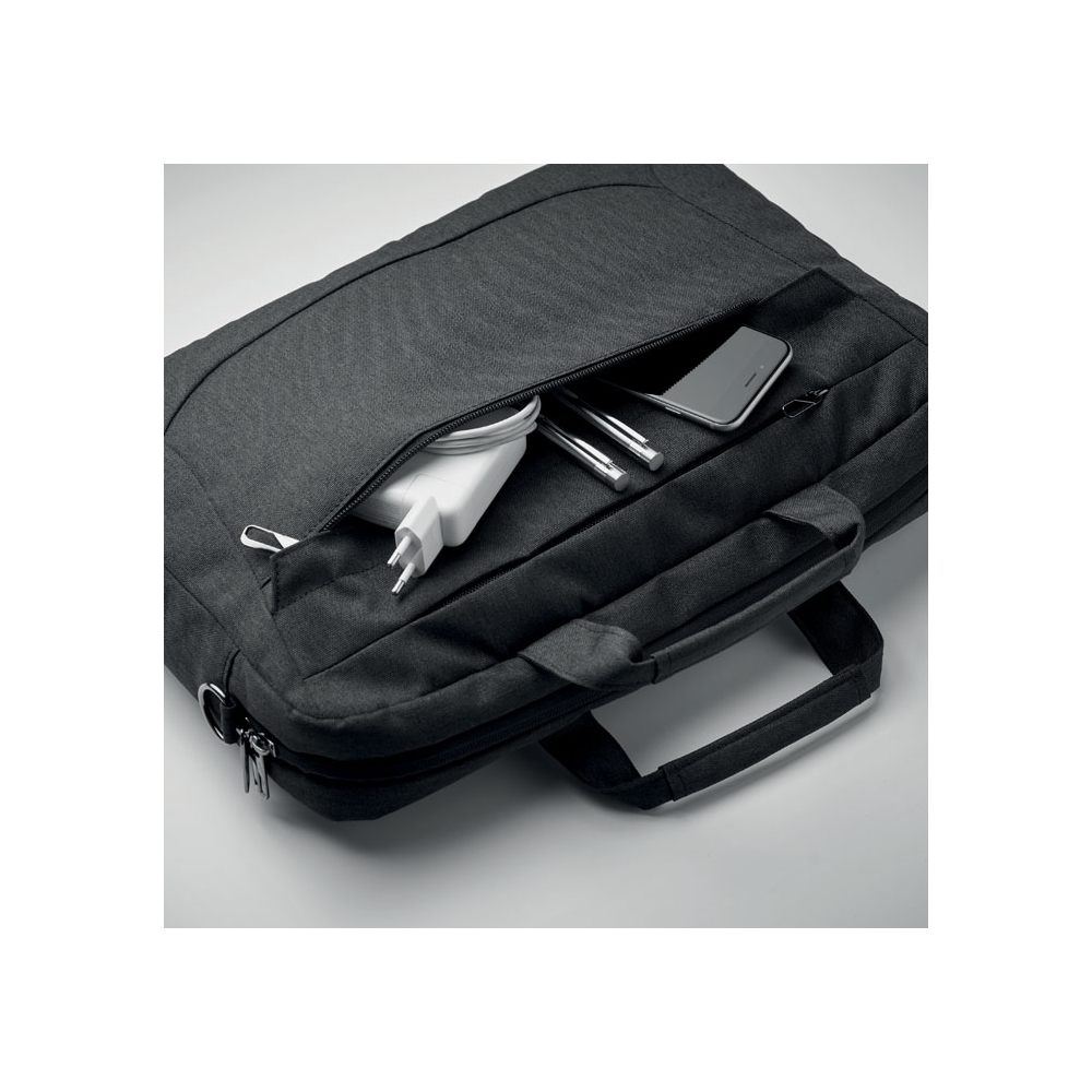 Artikel-Nr: OCBMO2048-0315'' Laptop-Tasche aus 600D RPET Polyester. 2 Hauptfächer für Laptop und Tablet sowie große Frontreißverschlusstasche. Kleine Tasche mit Reißverschluss. Abnehmbare und verstellbare Schultergurte. Trolley- Halterung.