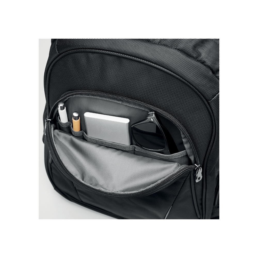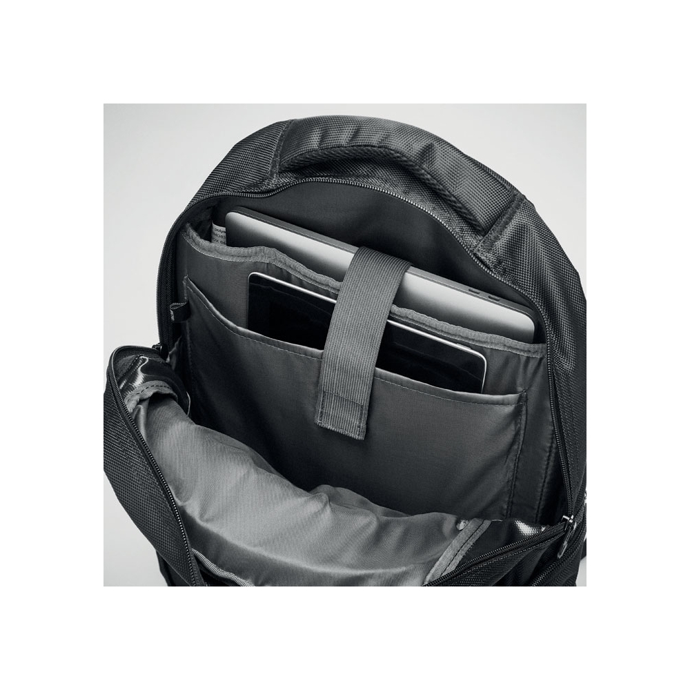 Artikel-Nr: OCBMO8399-0315'' Laptop Rucksack. Mit diversen Fächern und Stiftschlaufe. Gepolsterte Rückseite und gepolsterte Schultergurte. 1680D Polyester.