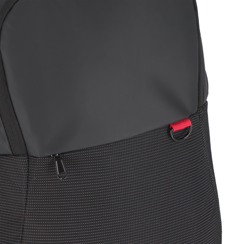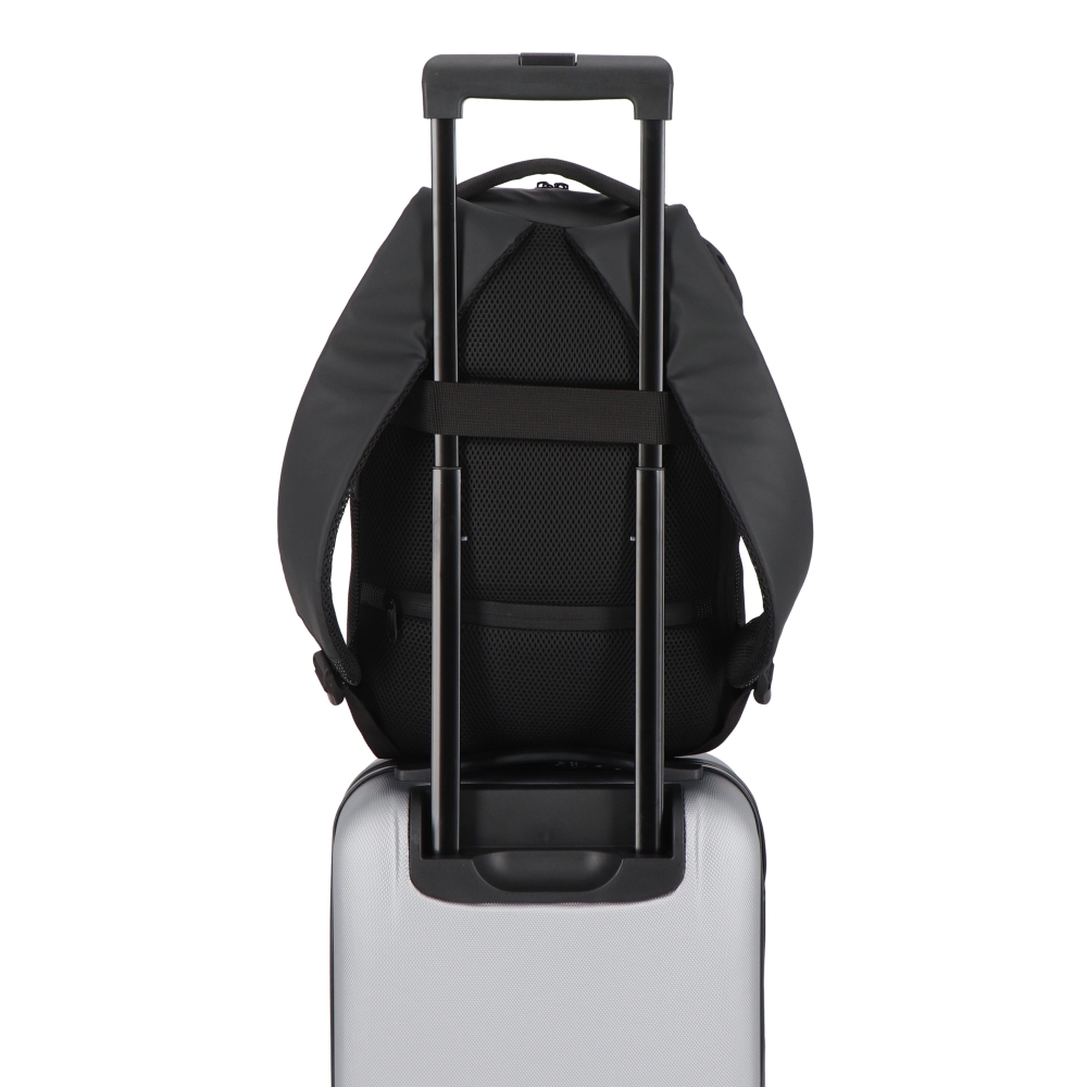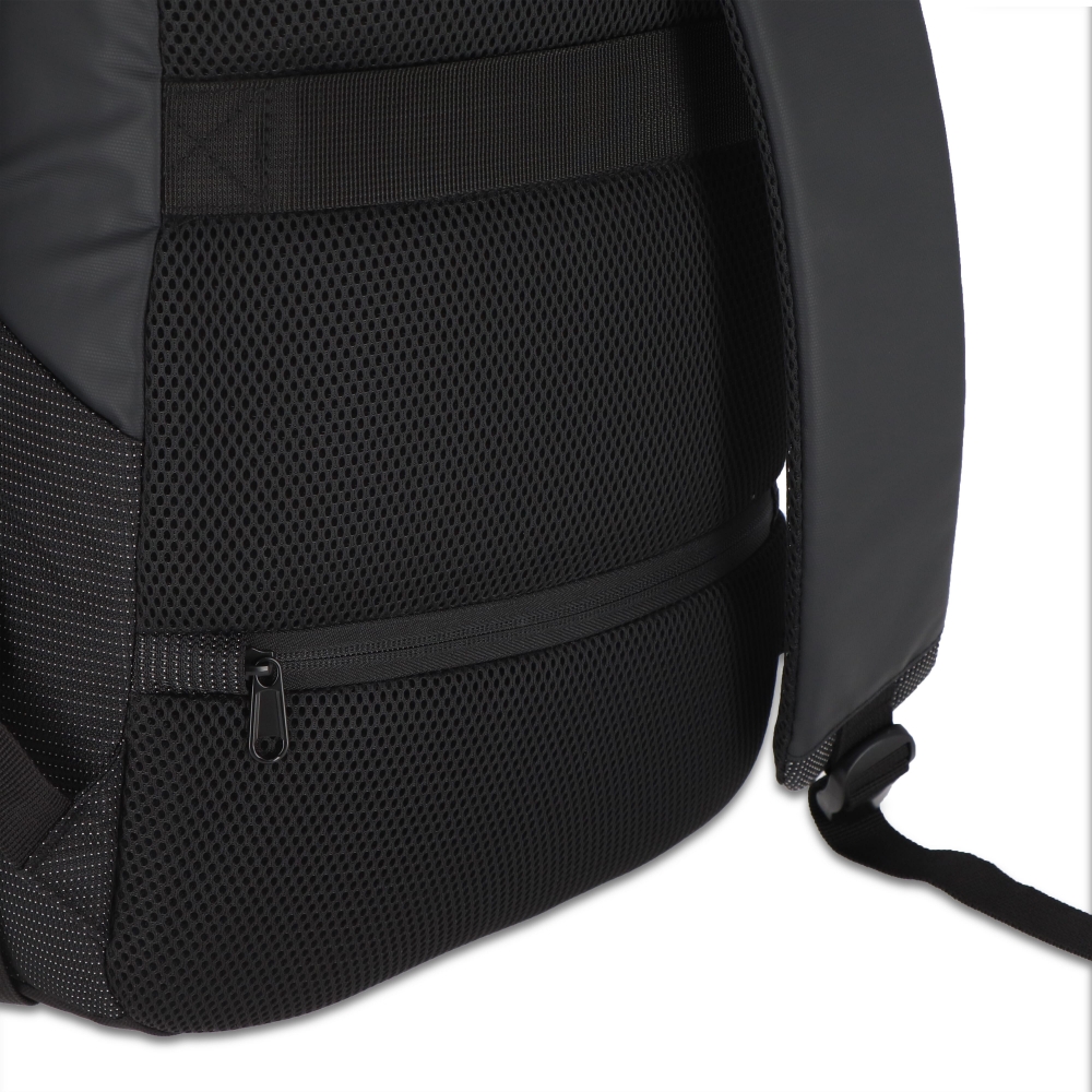 Artikel-Nr: ART95360N0002Dieser Rucksack ist aus luxuriösem Jacquard und PU-beschichtetem 600D-Material gefertigt. Er verfügt über ein verdecktes Reißverschlussfach an der Vorderseite, einen Griff an der Oberseite, gepolsterte und verstellbare Schultergurte und ein Sicherheitsfach auf der Rückseite für Wertsachen. Sie verfügt über einen Riemen zur Befestigung an einem Trolley-Griff, einen gepolsterten Rücken für mehr Komfort und einen doppelten Zugang für den Laptop entweder über die Hauptöffnung oder eine verdeckte Öffnung auf der Rückseite. Im Inneren befinden sich ein Netzfach, ein gepolstertes Laptop-Fach und ein gepolstertes Tablet-Fach, die alle mit 210D-Gewebe ausgekleidet sind.