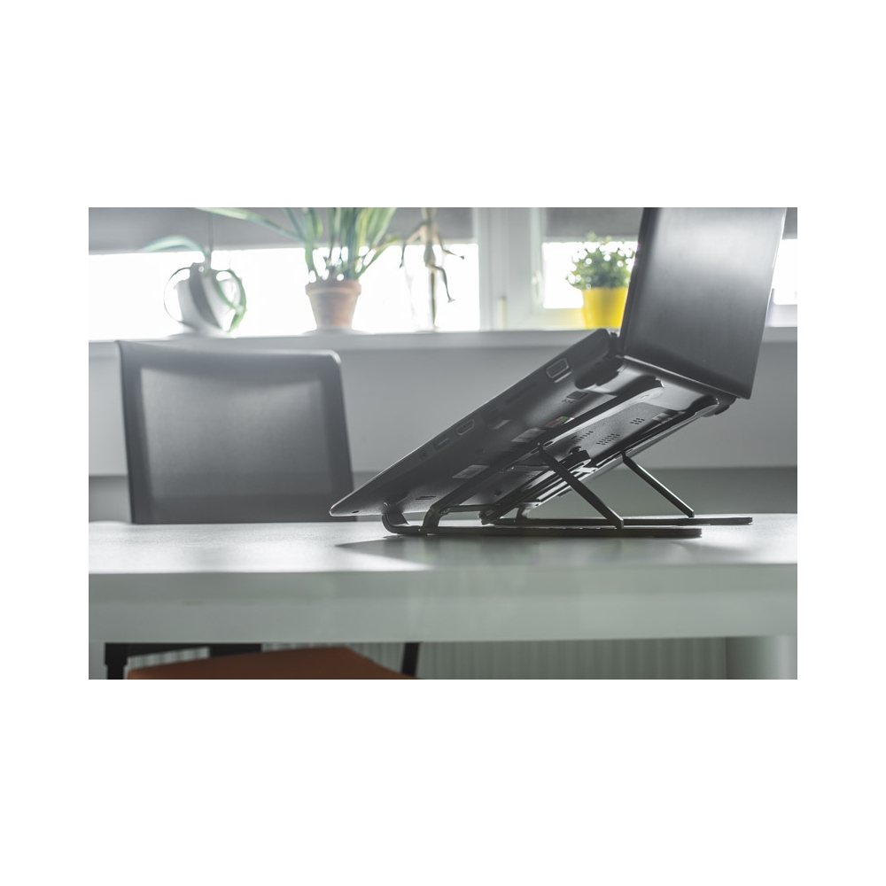 Artikel-Nr: ARD17868-02Der Laptopständer FOLD bietet mehr Arbeitskomfort und verbessert die Kühlung des Geräts. Das Zubehör hat eine leichte und dennoch solide Struktur, die gefaltet und angepasst werden kann. Sie können das Gerät in verschiedenen Winkeln anheben, was die Ergonomie verbessert und eine gesunde Position bei der Arbeit an einem Laptop oder Tablet beibehält. Es verfügt über rutschfeste Silikonelemente, die den Bedienkomfort nur erhöhen. Es bietet einen stabilen Halt für Geräte mit einer Größe von bis zu 15 Zoll. Das Set enthält eine Tasche aus Vliesstoff.