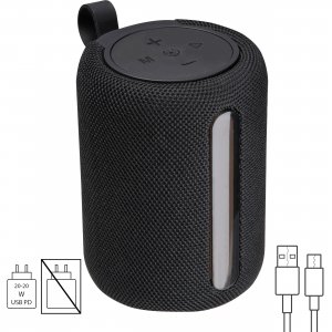 Artikel-Nr: MCM3524403Bluetooth-Lautsprecher (Version 5.3) in runder Form mit 800mAh Akkuleistung (5V) mit RGB-LED-Licht und Ladekabel. USB / Type-C Anschluss, SD Kartenschlitz und kleiner Trageschlaufe. Ihre Werbung wird auf die gummierte Oberfläche graviert.
