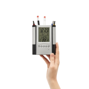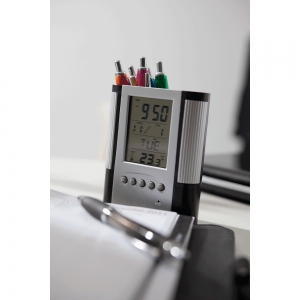 Artikel-Nr: INP56-0401315LCD-Wecker BUTLER: mit integriertem Stiftehalter, Datumsanzeige und Thermometer, in Box