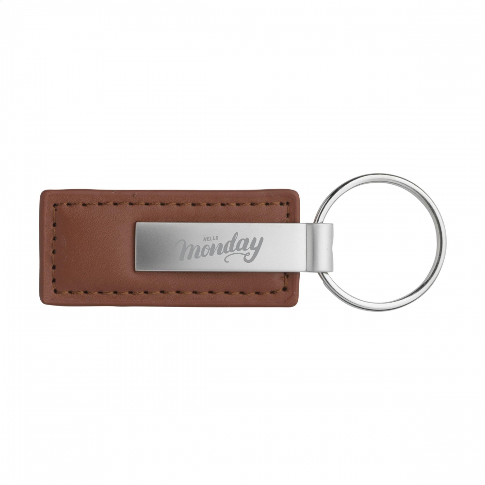 Artikel-Nr: CLP263407-011Mattmetallener Schlüsselanhänger mit stabilem Schlüsselring, kombiniert mit Imitatleder.
