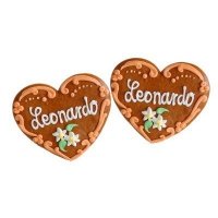 Artikel-Nr: W567ZS400Lebkuchenherz aus bestem Honiglebkuchenteig mit filigraner Dekoration und mit Namen nach Wunsch beschriftet. Die Farbe des Zuckergusses richten wir nach Kundenwunsch.