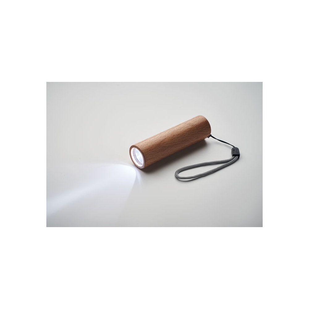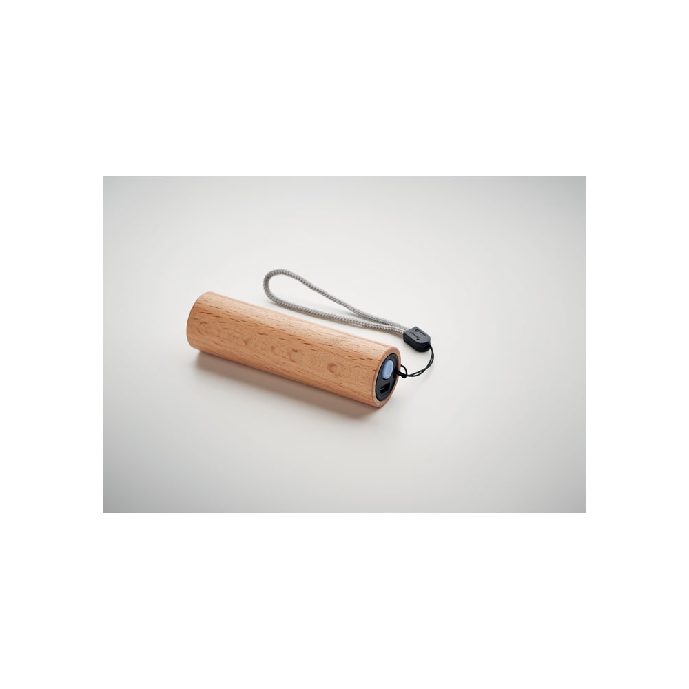 Artikel-Nr: OCBMO2137-40Wiederaufladbare LED- Taschenlampe. Leistung: 70 Lumen, 5W. Buchenholz. 3 Lichteinstellungen und Handschlaufe. Inkl. 500 mAh-Akku und Ladekabel.