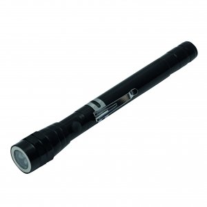 Artikel-Nr: INP58-0600611LED-Taschenlampe REFLECT: 3 lichtstarke weiße LED, gummierter An- und Ausschalter, mit bis auf ca. 55 cm ausziehbares Teleskopsystem, schwenkbarer Lampenkopf, Magnetring, praktischer Befestigungsclip, Gehäuse aus Aluminium, batteriebetrieben (4x LR44 Knopfzellen enthalten), in Box