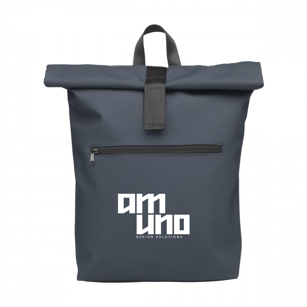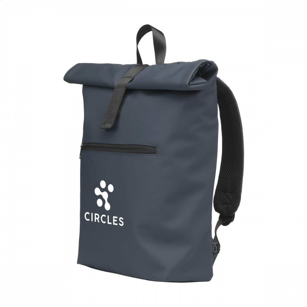 Artikel-Nr: CLP267376-536Praktischer, robuster und großzügiger 'Rolltop'-Laptop-Rucksack mit extra Reißverschlussfach auf der Vorderseite. Dieser Rucksack hat an der Oberseite nicht nur einen praktischen Rollverschluss mit Klettband, sondern auch einen Reißverschluss. Dieser Rucksack besteht aus wasserabweisendem PU, zu 5% aus recyceltem PU und zu 42% aus recyceltem Polyester. Der Rucksack hat ein sauber verarbeitetes Futter aus recyceltem PET und ist mit allem Komfort ausgestattet. Das großzügige Innenfach verfügt über ein separates Fach für einen Laptop (bis zu 15,6 Zoll) oder ein Tablet. Darüber hinaus finden Sie auf der Innenseite mehrere Einschubfächer zur organisierten Aufbewahrung von Handy, Schreibutensilien oder anderem Zubehör. Ein elastisches Band im Inneren hält eine Trinkflasche aufrecht an ihrem Platz. Mit praktischer Trageschlaufe. Für zusätzlichen Tragekomfort sind die Rückseite und die verstellbaren Schulterriemen mit weichem Schaumstoff ausgestattet. Dieser Rucksack ist perfekt für den täglichen Gebrauch und lässt sich leicht in die Schule oder zur Arbeit mitnehmen. RCS-zertifiziert. Gesamtes recyceltes Material: 47%. Fassungsvermögen: ca. 19 Liter.
