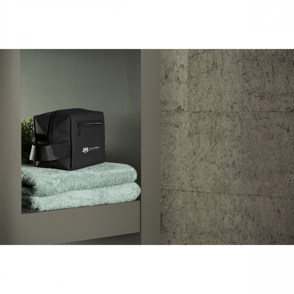 Artikel-Nr: CLP222598WoW! Praktischer und robuster Kulturbeutel zur Aufbewahrung von Körperpflegezubehör. Das Außenmaterial dieses Kulturbeutels besteht aus wasserabweisendem PU, zu 7% aus recyceltem PU und zu 32% aus recyceltem Polyester. Dieser Kulturbeutel ist sehr robust und zudem leicht zu reinigen. Ideal für den Einsatz in Bädern und Duschräumen. Die Innenseite ist mit einem Futter aus 210D RPET-Polyester verarbeitet. Das großzügige Reißverschlussfach ist mit elastischen Bändern und einem praktischen Seitenfach ausgestattet, sodass alle Ihre Utensilien gut organisiert aufbewahrt werden können. Darüber hinaus bietet der Kulturbeutel ein zusätzliches Reißverschlussfach auf der Vorderseite und eine praktische Trageschlaufe. Ein cooler Allrounder für den täglichen Gebrauch. RCS-zertifiziert. Gesamtes recyceltes Material: 39%.