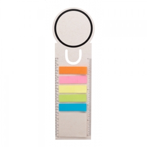Artikel-Nr: AND800777-01Lesezeichen aus recyceltem Milchkarton mit Linealfunktion, 15 Haftnotizzetteln und 75 Seitenmarkern (in 5 unterschiedlichen Farben).
