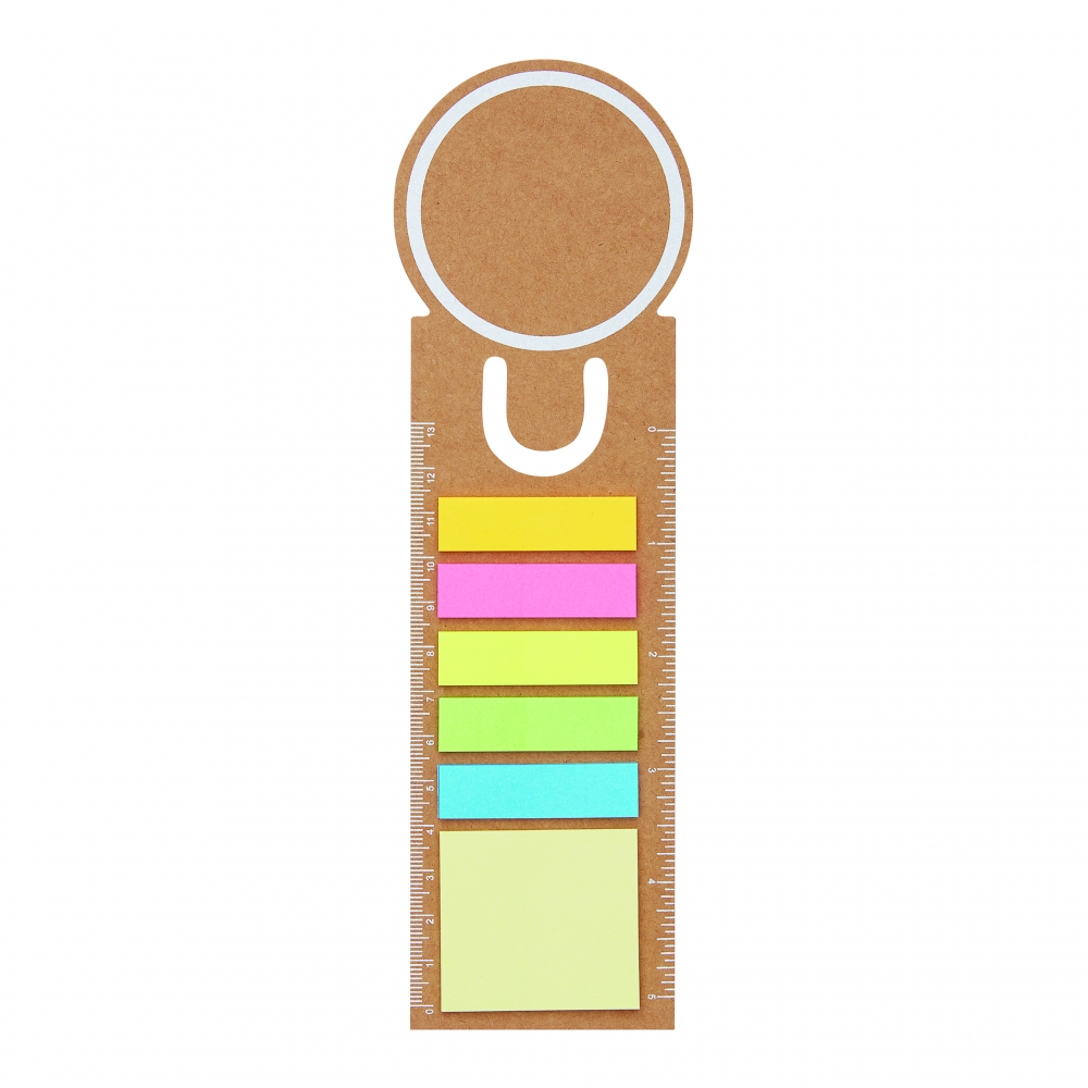 Artikel-Nr: INP56-1103032Lesezeichen CIRCULAR: mit 6 verschiedenfarbigen Klebenotizzetteln und Linealskala an den Seiten, recycelbar