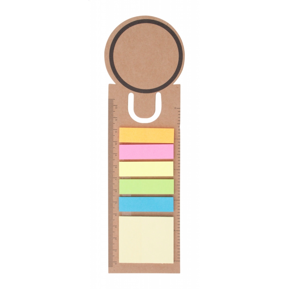 Artikel-Nr: AND808721Lesezeichen / Lineal aus Papier mit Haftnotizen. Ein Ende mit Kreis-Motiv.