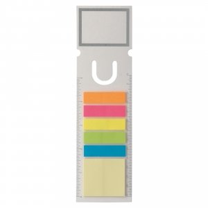 Artikel-Nr: ART91735N0001Lesezeichen versehen mit 15 selbstklebenden Memoblättern (pro Farbe / Format): 1 Block (44 x 40mm) und 5 selbstklebende Streifen (44 x 12mm) in verschiedenen Farben.