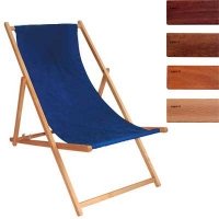 Erhältlich ist der Liegestuhl standardmäßig unbehandelt. Vier unterschiedliche Lasurfarben stehen zur Auswahl. Das Holzgestell kann auch in Weiß oder Schwarz lackiert werden. Standard-Stoff-Farben: Weiß, Schwarz, Navyblau, Grün, Hellgrün, Rot, Orange, Gelb und Cremefarben.