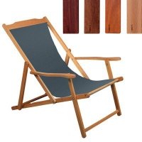 Artikel-Nr: W46840050Ein Liegestuhl aus Holz mit Armlehnen. Der Artikel ist mit einer Kunststoffsicherung ausgestattet, Sitzfläche aus Stoff ist abnehmbar. Das Holz wird standardmäßig unbehandelt geliefert. Gegen Aufpreis ist er auch handgeölt lieferbar. Der angegebene Artikelpreis bezieht sich auf die kleinste angebotene Größe. Der Preis variiert je nach Größe. Zur Verfügung stehende Größen im verpackten Zustand: 1600x625x32/70mm. Liegestühle in anderen Größen fragen Sie bitte gesondert an.
