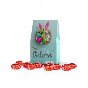 Artikel-Nr: MGN11010-0001Feinste Lindt Lindor Ostereier aus zartschmelzender Milchschokolade, verpackt in einer individuell bedruckten Standboden-Kartonage aus FSC® zertifiziertem Karton. Erhältlich in zwei Größen – das ideale Präsent für genussvolle Ostermomente.