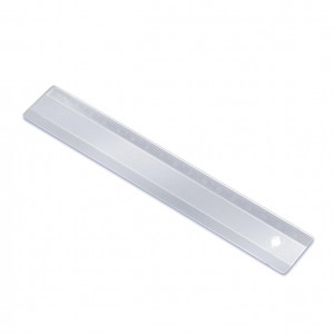 Artikel-Nr: ELT03883010-00000Stabiles 16 cm langes Lineal aus Kunststoff mit erhaben geprägter mm-Skala auf einer Seite. Standardmäßig ohne Druck. Loch auf einer Seite.