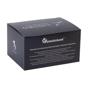 Artikel-Nr: CLP263238-018Blauschreibender Kugelschreiber der Marke Linoro. Hergestellt aus recyceltem Ocean Bound Plastic von Plastic Bank®. Der Kugelschreiber ist ausgestattet mit einem breiten, matten Gehäuse und einem glänzenden Druckknopf mit integriertem Clip. Der großzügige Clip und das robuste, breite Gehäuse bieten viel Platz für einen auffälligen Aufdruck. Hergestellt in Italien.