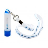 Artikel-Nr: A358LB04Lippenpflegestift mit farblich wählbarem Clip und neutralem Lanyard, 1c-Druck auf Lanyard gegen Aufpreis möglich.