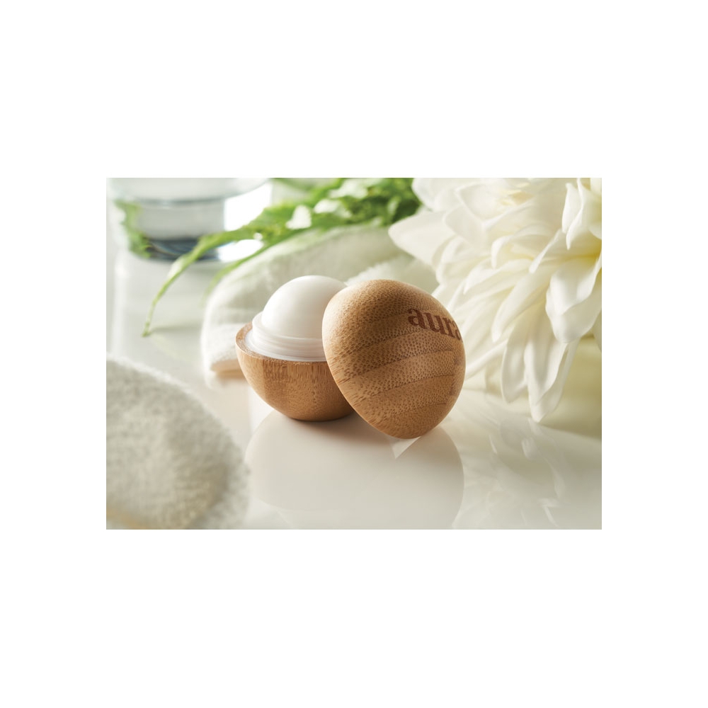 Artikel-Nr: OCBMO6753-40Natürlicher Lippenbalsam in einem runden Behälter aus Bambus. Dermatologisch getestet. SPF10. Aroma: Vanille. Bambus ist ein natürliches Produkt, es kann daher zu leichten Abweichungen in Farbe, Dekor und Maßen kommen.