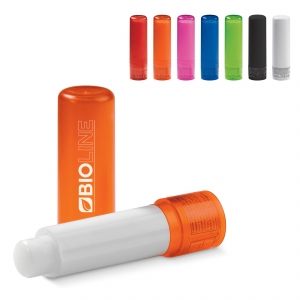 Artikel-Nr: ART90476N5411Lippenbalsam (SPF15) in einem runden Gehäuse. An der Unterseite des Stifts ist ein Drehmechanismus zum herausdrehen des Pflegestifts. Lieferbar in transparenten Farben oder einfarbig in schwarz oder weiß.