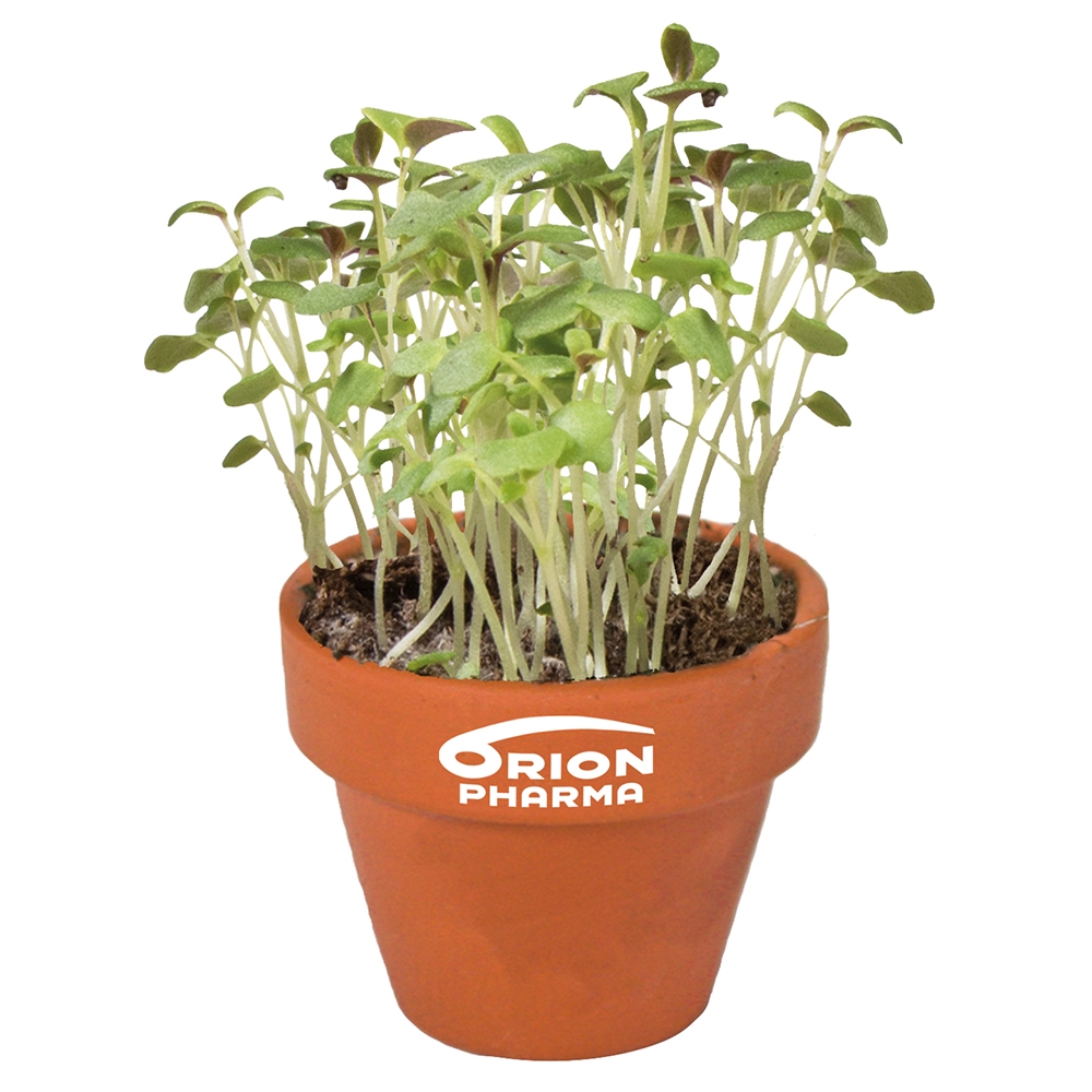 Artikel-Nr: HOP12.10021.00-fiDer Logo-Topf mit Substrattablette und Pflanzensamen in Terracotta "natur", macht besonders hochwertig und stilvoll auf die Werbebotschaft aufmerksam. Verschiedene Samensorten in großer Auswahl sind als Inhalt im Topf lieferbar. Die Individualisierung erfolgt 4-c auf dem Karton sowie auf dem Rand oder der Seite des Töpfchens in 1-c.
