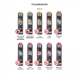 Füllvarianten: 1 Shot Ice Wassereis, Blue Raspberry oder 1 Shot Ice Wassereis, Crisp Passion Fruit mit Wodka oder 1 Shot Ice Wassereis, Blue Berry Mint mit Wodka oder 1 Shot Ice Wassereis, Black Cassis Lime mit Wodka oder 1 Shot Ice Wassereis, Watermelon & Hib ...