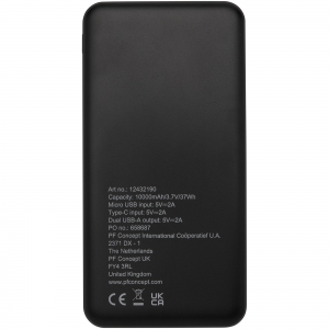 Artikel-Nr: CPO12432190Powerbank aus recyceltem ABS-Kunststoff. Die Powerbank enth??lt einen langlebigen Lithium-Polymer-Akku der Güteklasse A mit 10.000 mAh für schnelles Aufladen. Die Energieanzeige zeigt den verbleibenden Energiestand an, so dass Sie immer wissen, wann Sie wieder aufladen müssen. Typ-C-Eingang 5V/2A, Micro-USB-Eingang 5V/2A, dualer USB-A-Ausgang 5V/2A, Gesamtleistung 10 W. Geliefert mit einem 30 cm langen TPE-2A-USB-A-auf-Typ-C-Ladekabel, einer Bedienungsanleitung und einer Geschenkbox aus Kraftpapier.