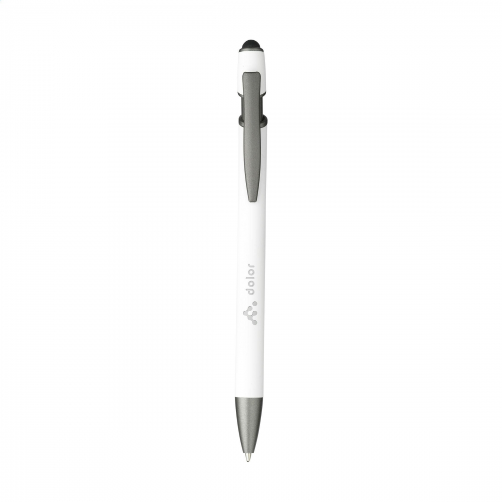 Artikel-Nr: CLP262727-002128Blauschreibender Kugelschreiber mit einem Gehäuse aus recyceltem Aluminium. Das Gehäuse verfügt über eine gummierte Soft-Touch-Oberfläche und eine Gummispitze zum Bedienen von Touchscreens. Mit Metallclip. RCS-zertifiziert. Gesamtes recyceltes Material: 94%.Durch die Verwendung von recyceltem Aluminium werden bei der Herstellung dieses Produkts weniger neue Rohstoffe verwendet. Das bedeutet weniger Energieverbrauch und weniger Wasserverbrauch.