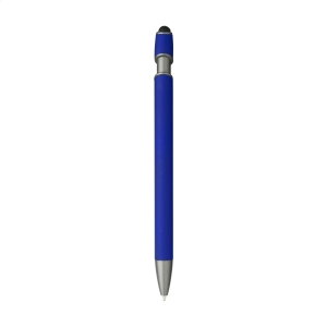 Artikel-Nr: CLP27273020WoW! Blauschreibender Kugelschreiber mit einem Gehäuse aus 100% RCS-zertifiziertem recyceltem Aluminium. Das Gehäuse ist mit einer gummierten Soft-Touch-Oberfläche und einer gummierten Spitze / Zeiger zum Bedienen von Touchscreens versehen. Metallclip und Kunststoffspitze. RCS-zertifiziert. Gesamtes recyceltes Material: 24%. Durch die Verwendung von recyceltem Aluminium werden bei der Herstellung dieses Produkts weniger neue Rohstoffe verwendet. Das bedeutet weniger Energieverbrauch und weniger Wasserverbrauch.