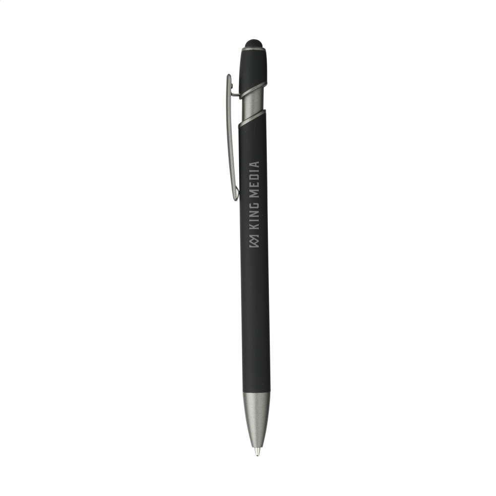 Artikel-Nr: CLP27279820WoW! Blauschreibender Kugelschreiber mit einem Gehäuse aus 100% RCS-zertifiziertem recyceltem Aluminium. Das Gehäuse ist mit einer gummierten Soft-Touch-Oberfläche und einer gummierten Spitze / Zeiger zum Bedienen von Touchscreens versehen. Metallclip und Kunststoffspitze. RCS-zertifiziert. Gesamtes recyceltes Material: 24%. Durch die Verwendung von recyceltem Aluminium werden bei der Herstellung dieses Produkts weniger neue Rohstoffe verwendet. Das bedeutet weniger Energieverbrauch und weniger Wasserverbrauch.