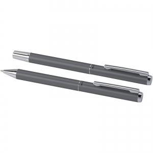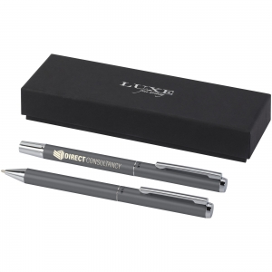 Lucetto Set mit Kugelschreiber und Tintenroller aus recyceltem Aluminium (schwarze Mine)