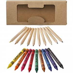Artikel-Nr: CPO106788009 farbige Wachsmalstifte und 10 Buntstifte im Karton mit Kunststofffenster.