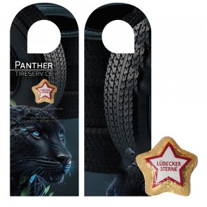 Artikel-Nr: FNM01965Türhänger aus Papier. Werbeanbringung als Direktdruck in 4c individuell bedruckbar. Zutaten Lübecker Marzipansterne: Zucker, Mandeln gemahlen(37%), Kakaomasse, Wasser, Kakaobutter, Emulgator: Lecithin (E 322), Feuchthaltemittel: Invertase (E 1103).