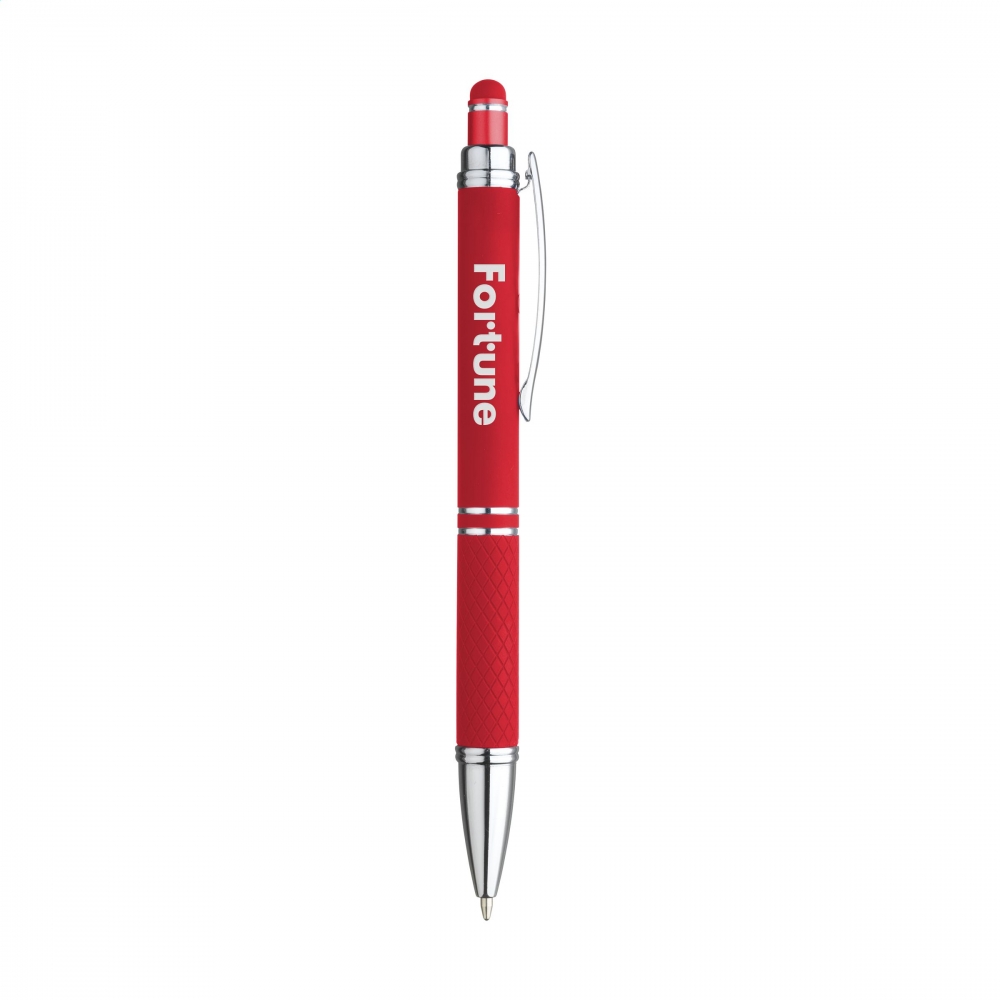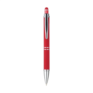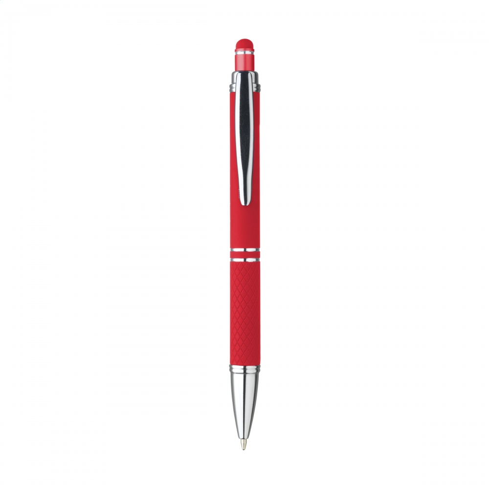 Artikel-Nr: CLP28926020Blauschreibender Aluminium-Kugelschreiber mit Metallclip und gummierter Spitze für das Bedienen von Touchscreens (wie iPhone / iPad). Der Halter ist mit einer schönen gummierte Soft-Touch-Oberfläche versehen. Auf dem Vorderteil ist ein spielerisches Relief angebracht, das für einen festen Griff sorgt. Bei diesem Stift wurde viel Wert auf kleine zusätzliche Details gelegt. Das macht sein Design auffallend attraktiv.