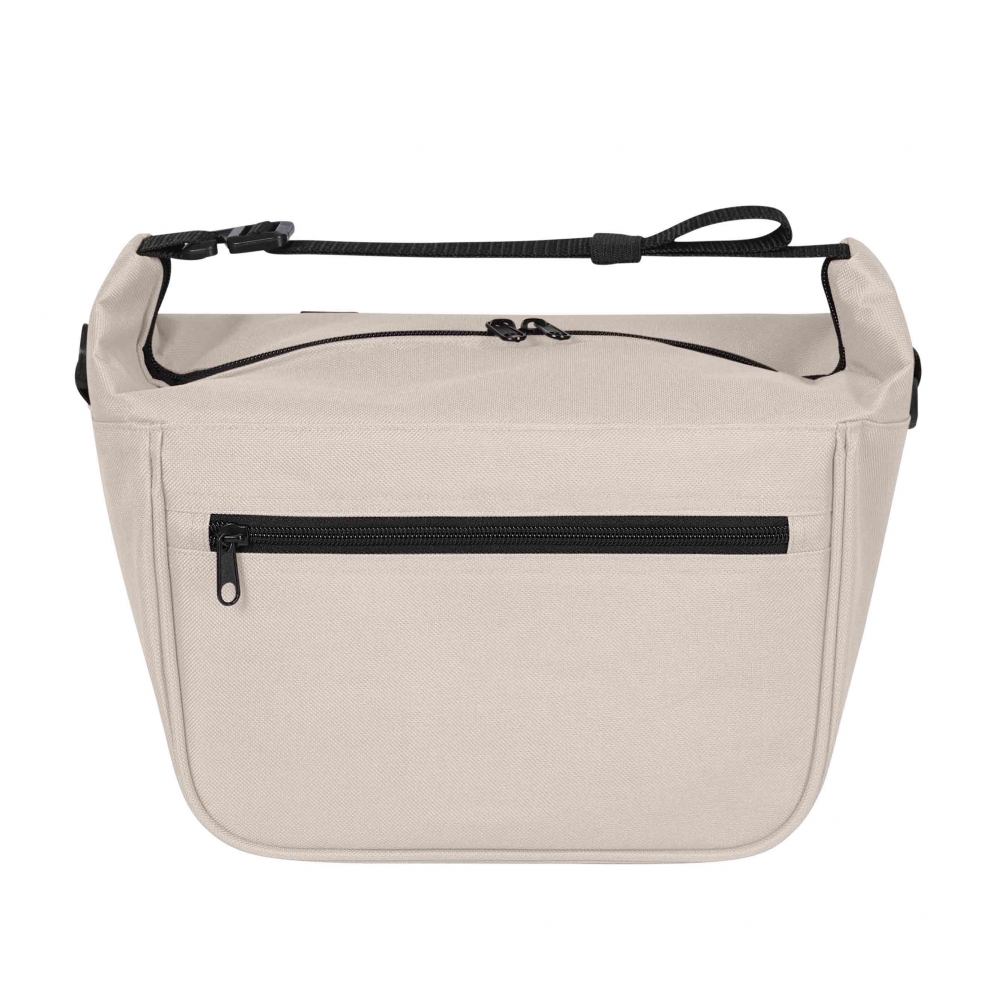 Artikel-Nr: HLF1818049-198Moderne Kühltasche; Hauptfach mit 2-Wege-Reißverschluss; großzügige Polsterung; innen abwaschbar; einseitig lösbarer, längenverstellbarer Träger mit Gummilasche zur Gurtfixierung; beidseitig D-Ringe zu Befestigung z. B.: für optionalen Schultergurt* oder Schlüssel; Bodenfüße; rückseitig Schlaufen zur Befestigung am Fahrradlenker