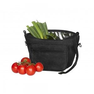 Artikel-Nr: HLF1818049-1Moderne Kühltasche; Hauptfach mit 2-Wege-Reißverschluss; großzügige Polsterung; innen abwaschbar; einseitig lösbarer, längenverstellbarer Träger mit Gummilasche zur Gurtfixierung; beidseitig D-Ringe zu Befestigung z. B.: für optionalen Schultergurt* oder Schlüssel; Bodenfüße; rückseitig Schlaufen zur Befestigung am Fahrradlenker