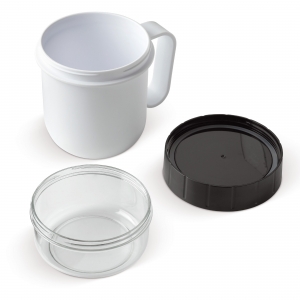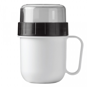 Artikel-Nr: ART90410N0001Idealer Becher mit zwei Fächern. Der große Trinkbecher, den Sie mit Joghurt oder Suppe füllen können und das kleine Fach oben können Sie mit Müsli, Obst oder Croutons füllen. So bleibt alles frisch und knusprig.