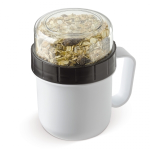 Artikel-Nr: ART90410N0001Idealer Becher mit zwei Fächern. Der große Trinkbecher, den Sie mit Joghurt oder Suppe füllen können und das kleine Fach oben können Sie mit Müsli, Obst oder Croutons füllen. So bleibt alles frisch und knusprig.