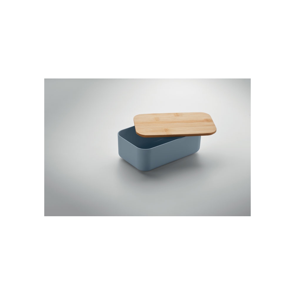 Artikel-Nr: OCBMO2311-20Lunchbox aus 100% PLA-Mais. Deckel aus Bambus und RPET-Elastikbandverschluss. Füllmenge: 1000 ml.