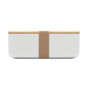 Artikel-Nr: OCBMO2311-06Lunchbox aus 100% PLA-Mais. Deckel aus Bambus und RPET-Elastikbandverschluss. Füllmenge: 1000 ml.