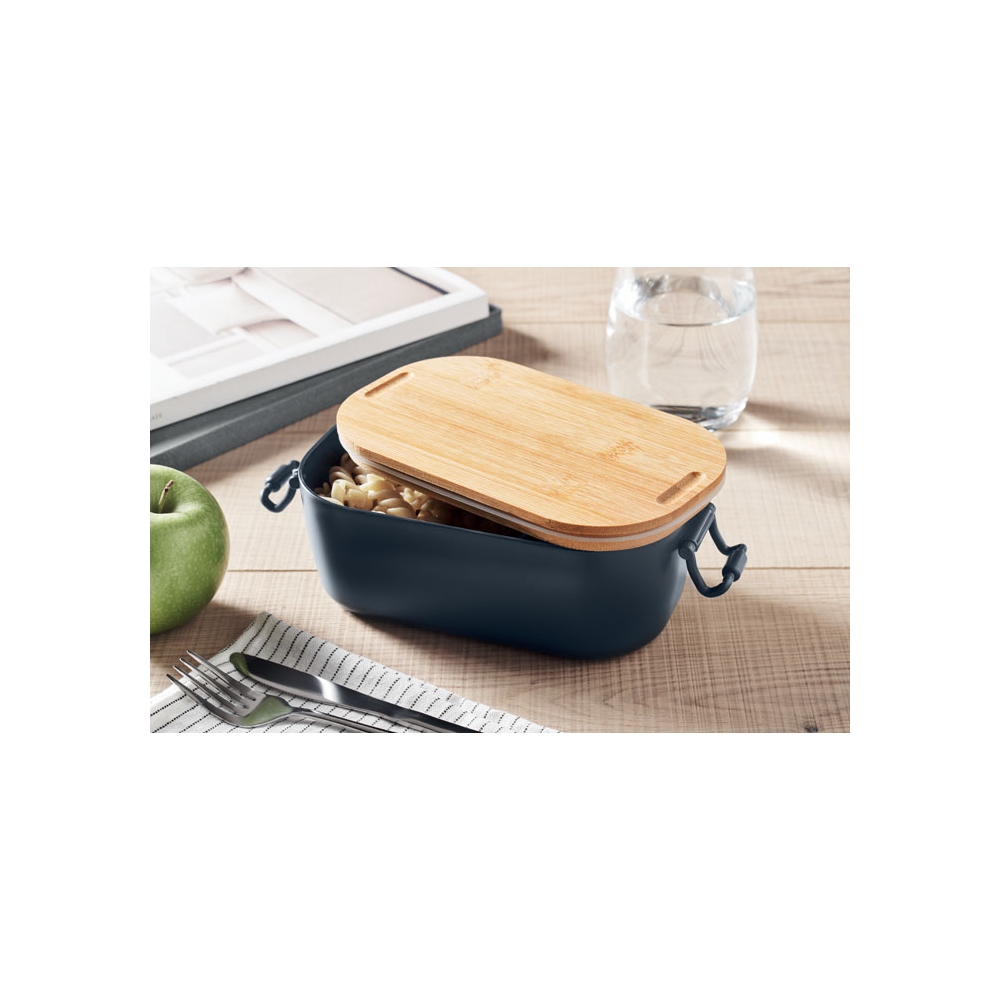 Artikel-Nr: OCBMO2459-85Lunchbox aus PP mit Deckel aus Bambus. 2 seitliche Halteklammern. Füllmenge: 700 ml.