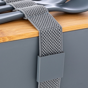 Artikel-Nr: RFS52621-GYDie Lunchbox RE98-Bambugusto zeichnet sich durch ein großes Füllvolumen von 1500 ml aus. Die Lunchbox eignet sich hervorragend zur Aufbewahrung von Obst, Salat und anderen Snacks für unterwegs. Das mitgelieferte Besteck-Set besteht aus Gabel, Löffel und Messer. Sowohl die Lunchbox als auch alle Besteckteile sind aus BPA-freiem Kunststoff hergestellt. Dank der Silikondichtung und des Nylonbandes mit Schnalle ist RE98-Bambugusto auslaufhemmend. Der Bambusdeckel und die Schnalle aus recyceltem PP-Kunststoff verleihen dem Artikel eine trendige Optik. Tipp: Die Lunchbox ist spülmaschinengeeignet (ausgenommen dem Bambusdeckel). RE98-Bambugusto bietet eine großzügige und gut sichtbare Werbefläche. Werbebotschaften können entweder per Tampondruck, UV-Druck oder CO2-Lasergravur auf dem Deckel, oder per Tampondruck auf der Box oder Schnalle aufgebracht werden.