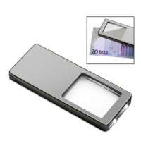 Damit schauen sie ganz genau hin! Leselampe und Lupe, Geldscheinprüfer und Taschenlampe. Kunststoff/Metall, Batterie inklusive, Beleuchtung, LED-Farbe weiß, Vergrößerungslinse, REFLECTS Verpackung Maße: 90 x 35 x 9 mm