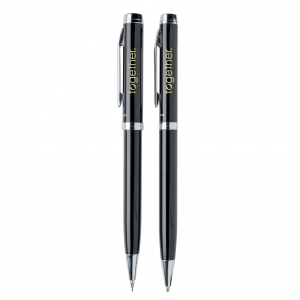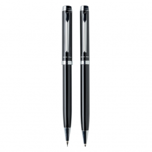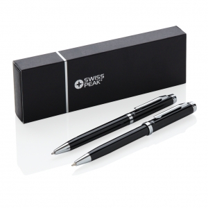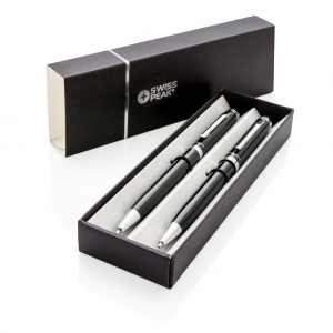 Artikel-Nr: XND610490Elegantes Schreibset aus Kugelschreiber und Bleistift. 1200m blauschreibender, deutscher Tinte und der Bleistift mit 3 Minen von 0,7mm Stärke. Verpackt in Swiss Peak Geschenkbox.