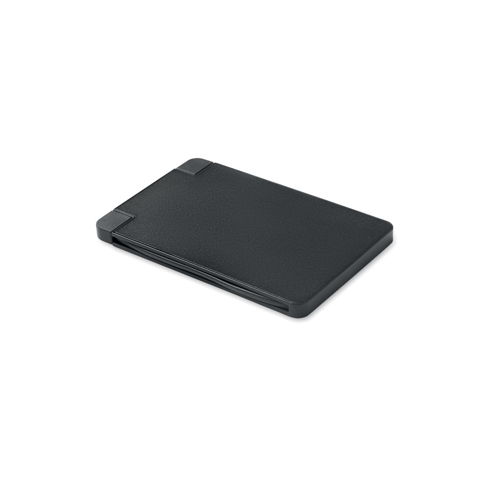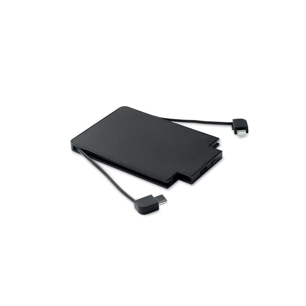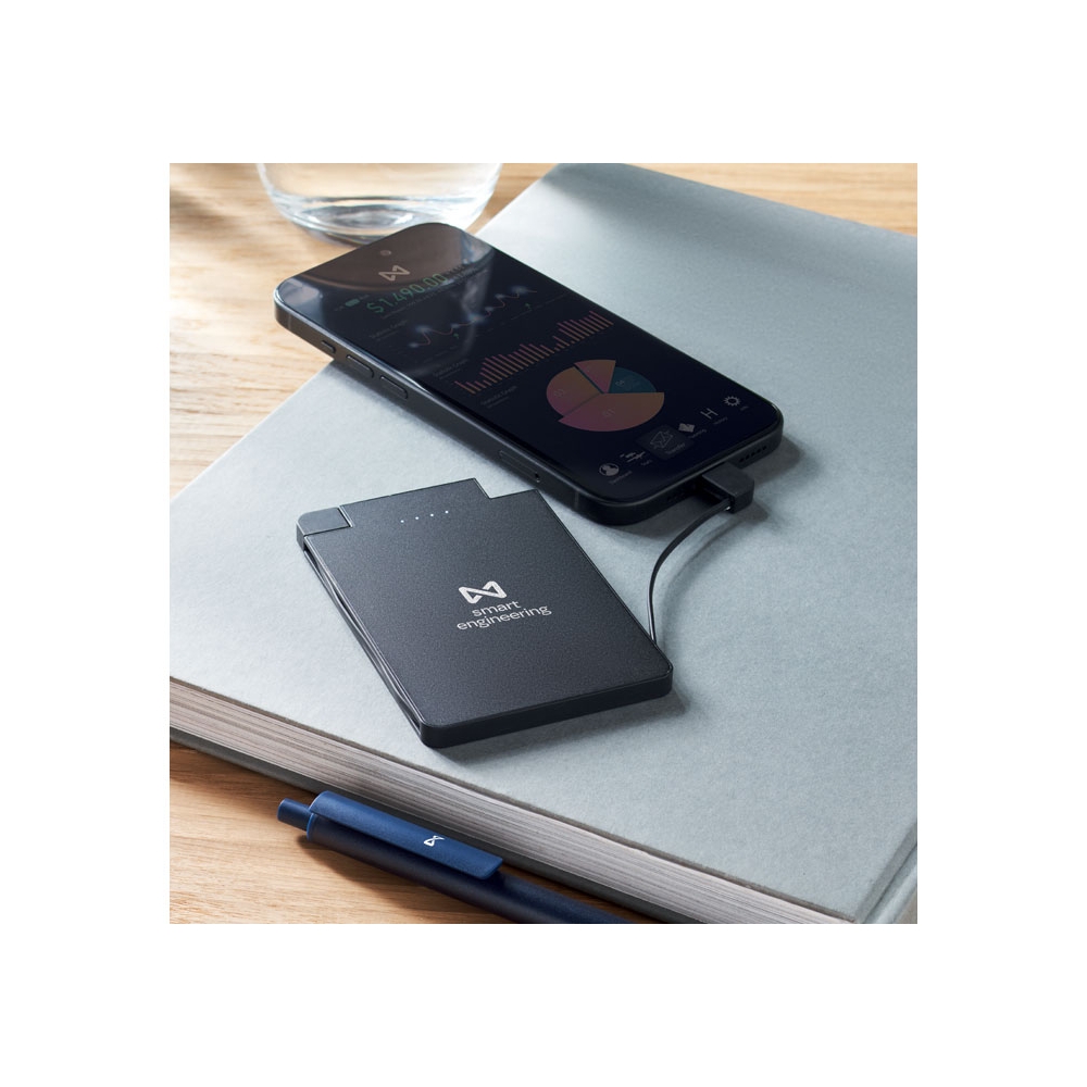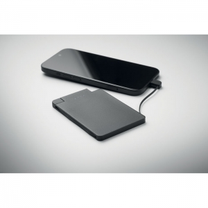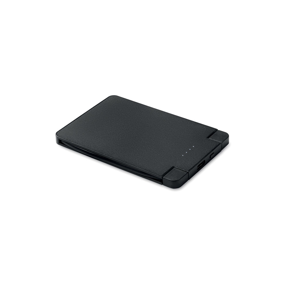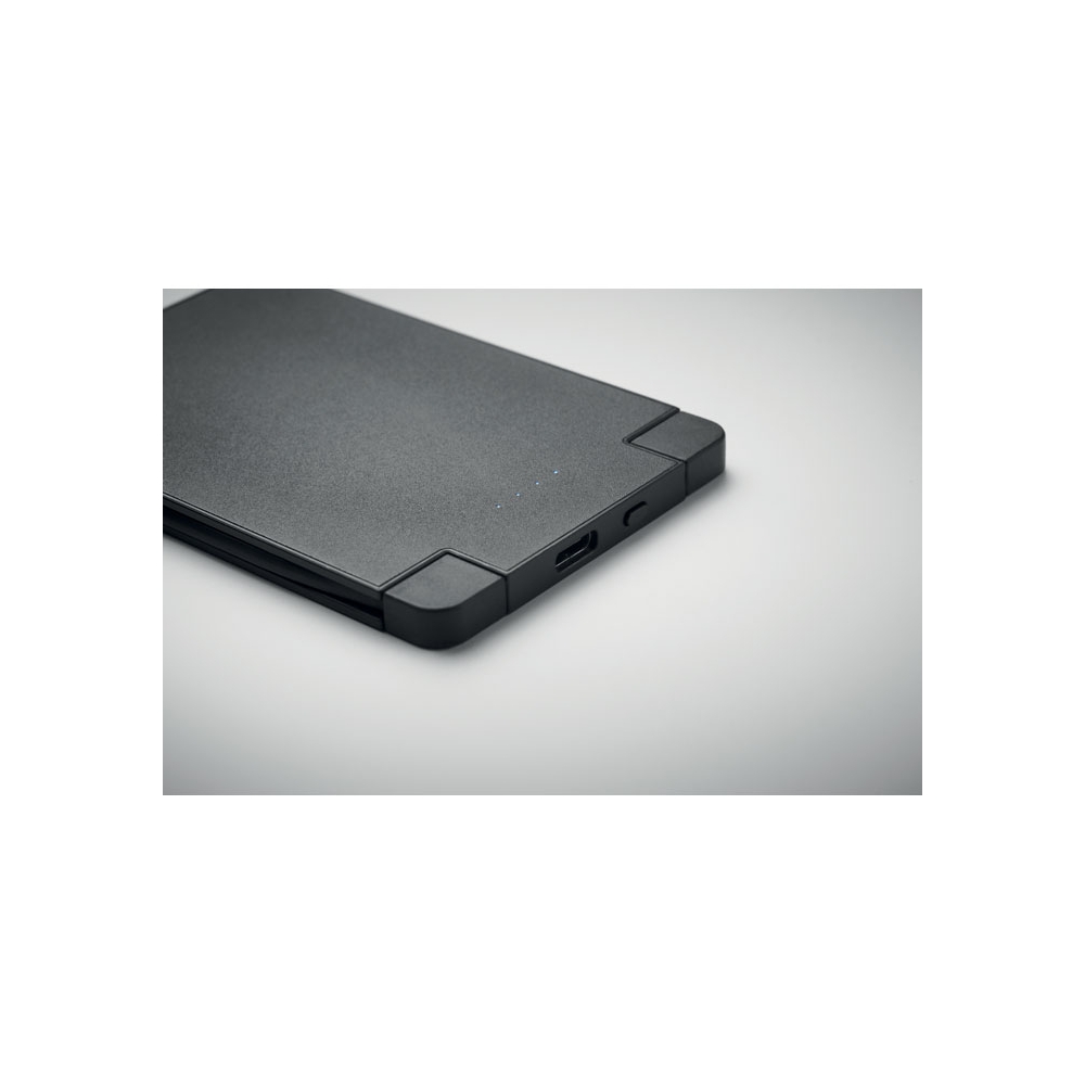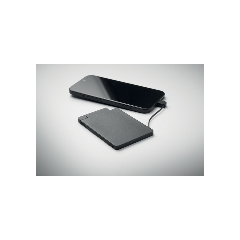 Artikel-Nr: OCBMO2510-03Magnetische, kreditkartengroße Powerbank 2500 mAh aus ABS mit integrierten Kabeln. Die Powerbank haftet an magnetischen iOs-Smartphones. Eingang: Typ-C und Ausgang Typ-C, kompatibel mit IOS-Geräten.