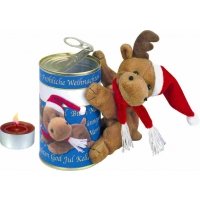 Artikel-Nr: 449004078Ein lustiger magnetischer Weihnachts-Elch aus Plüsch ist in einer Dose mit Aufreißdeckel, zusammen mit einem Duft-Teelicht verpackt. Ein schönes Präsent zu Weihnachten. Platz für Ihren Werbeeindruck ist auf dem Standardmotiv der Banderole oder eine eigene Gestaltung, jeweils ab 250 Stück.