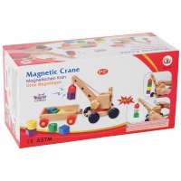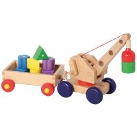 Mit dem Holzkran den Anhänger mit acht Holzklötzen zu be- und entladen, ist dank Magnettechnik lustig und lehrreich. Größe des Krans mit Anhänger: 41 x 14 x 12 cm. Ab 2 Jahren.