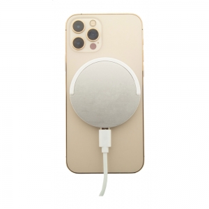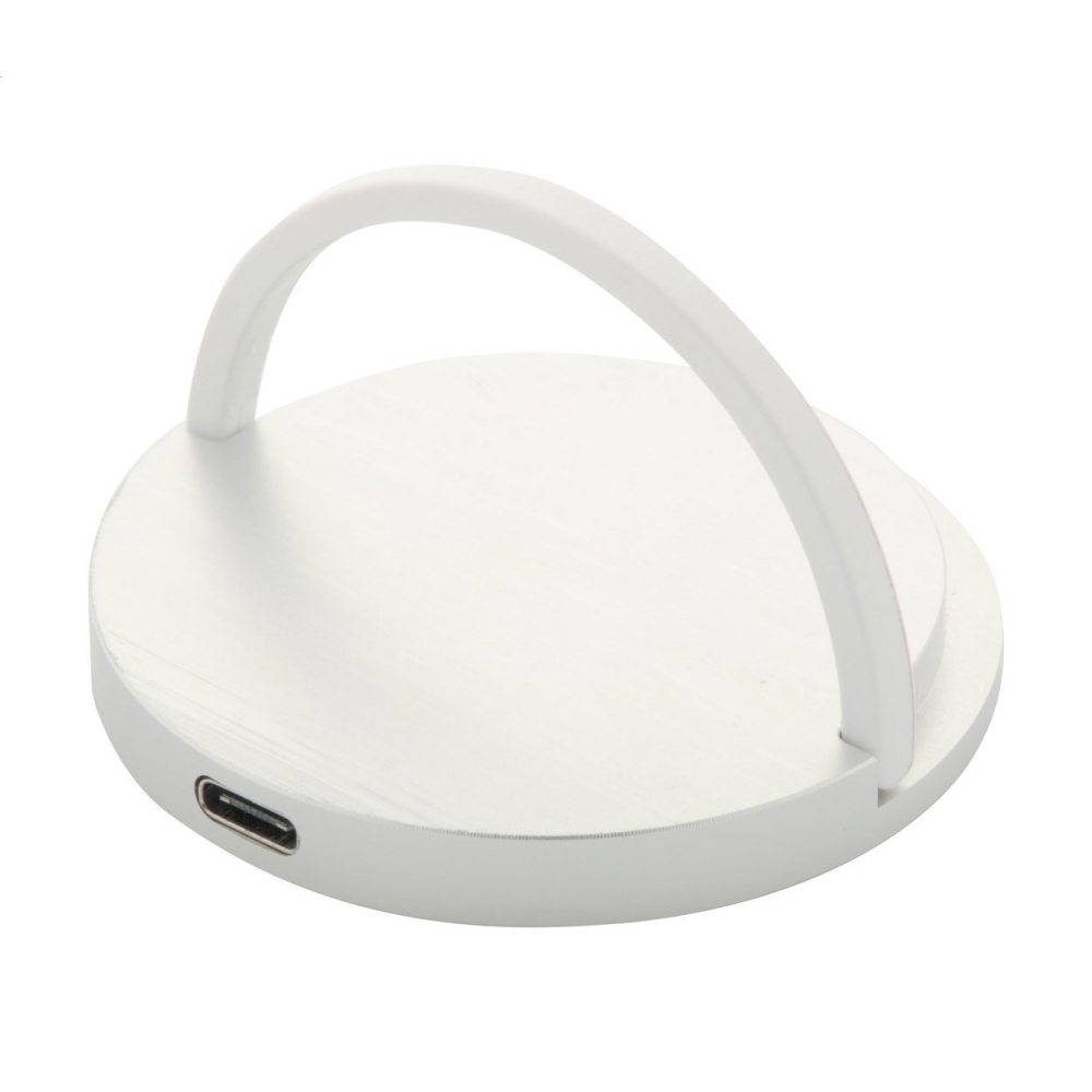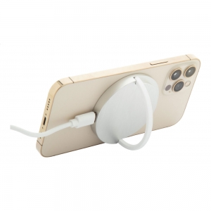 Artikel-Nr: AND864035-21Magnetischer Wireless-Fastcharger (15W) aus recyceltem Aluminium und RABS-Kunststoff mit Handyhalterring. Kompatibel mit iPhone® 12 oder neuer. Inkl. USB-Ladekabel.