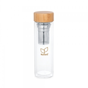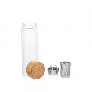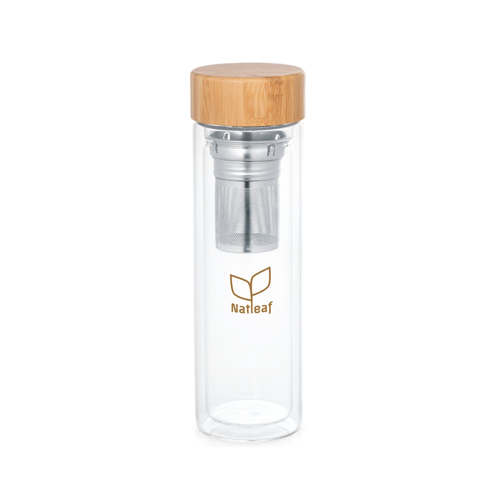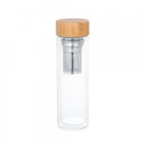 Artikel-Nr: PST94765-160Trinkflasche aus Borosilikatglas (490 mL), doppelwandig, luftisoliert mit Deckel aus Bambus. Beinhaltet zwei Teesiebe aus Edelstahl. Spülmaschinengeeignet (ohne Deckel). Geliefert in einer Geschenkschachtel aus Kraftpapier. Da das Produkt aus natürlichen Materialien hergestellt wird, können Farbe des Produkts sowie das Druckergebnis von Produkt zu Produkt unterschiedlich sein. ø72 x 234 mm